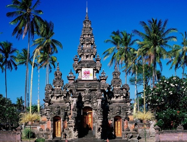 【海神庙】十六世纪时期,一位来自爪哇的高僧从峇里岛的西岸南下到这边,被这里的海中巨石奇观为之惊艳,认定这里一定有神灵的现象,所以协同当地村民的力量共同建立这间海神庙。在海中宛如船只,矗立着峇里岛的六大寺庙之一的海神庙,据说巨石下的洞穴是神化身为黑海蛇时栖身处。此神庙屹立于海中岩石,浮沉于印度洋波涛汹涌之中,是为了保佑峇里岛世世代代平安而建立的,海神庙的香火鼎盛,周遭的景致更是优雅绝伦,尤其是海水碧蓝,水波中闪耀着金黄的光彩,此情此景,是许多摄影家的最爱,因此也使海神庙名声大噪。